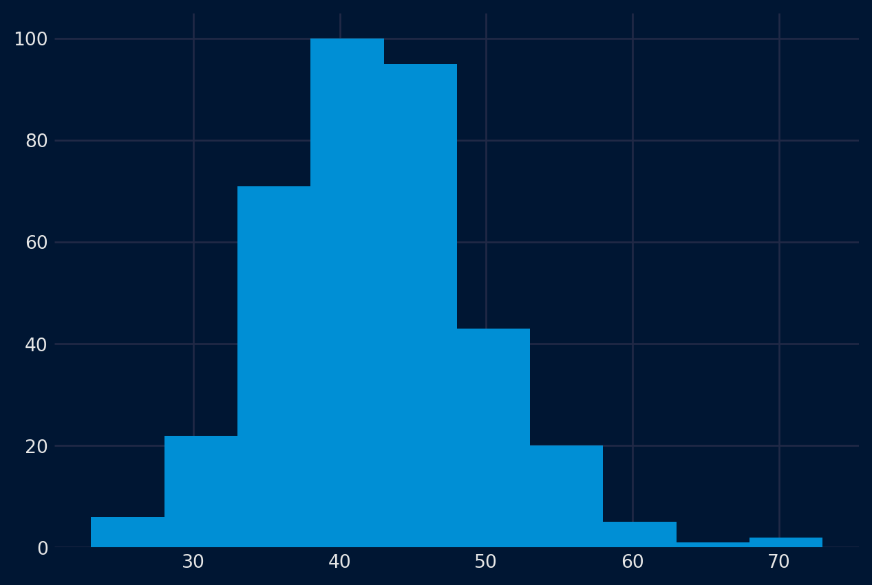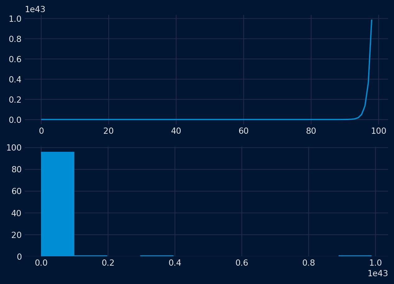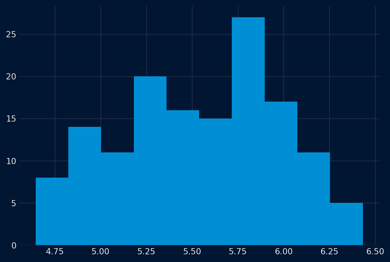 Otra visualización importante es la de la distribución de las propias observaciones. Es decir, un gráfico de los valores sin la ordenación temporal. Algunos métodos de previsión lineal de series temporales suponen que la distribución de las observaciones es correcta (es decir, una curva de campana o una distribución normal). Esto puede comprobarse explícitamente con herramientas como las pruebas de hipótesis estadísticas. Pero los gráficos pueden proporcionar una primera comprobación útil de la distribución de las observaciones, tanto en las observaciones brutas como después de realizar cualquier tipo de transformación de los datos.