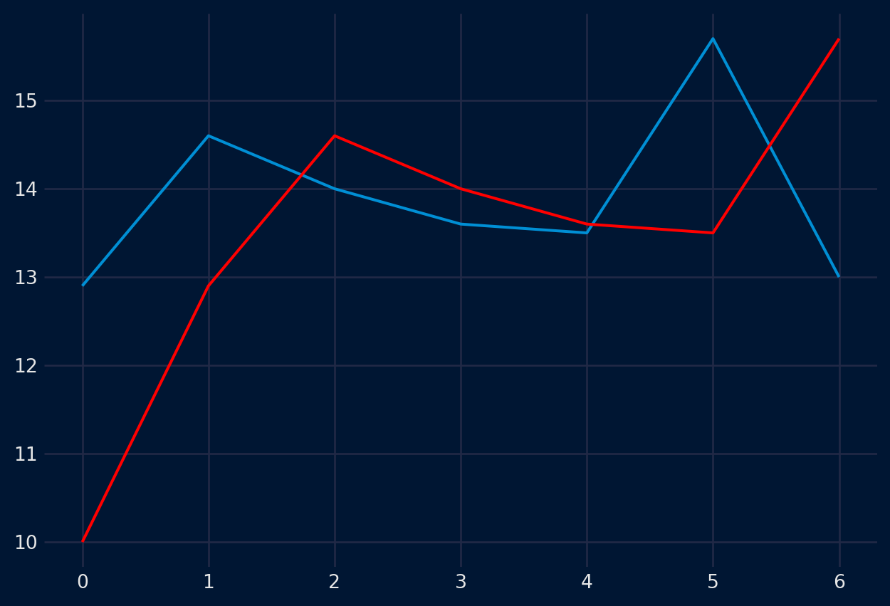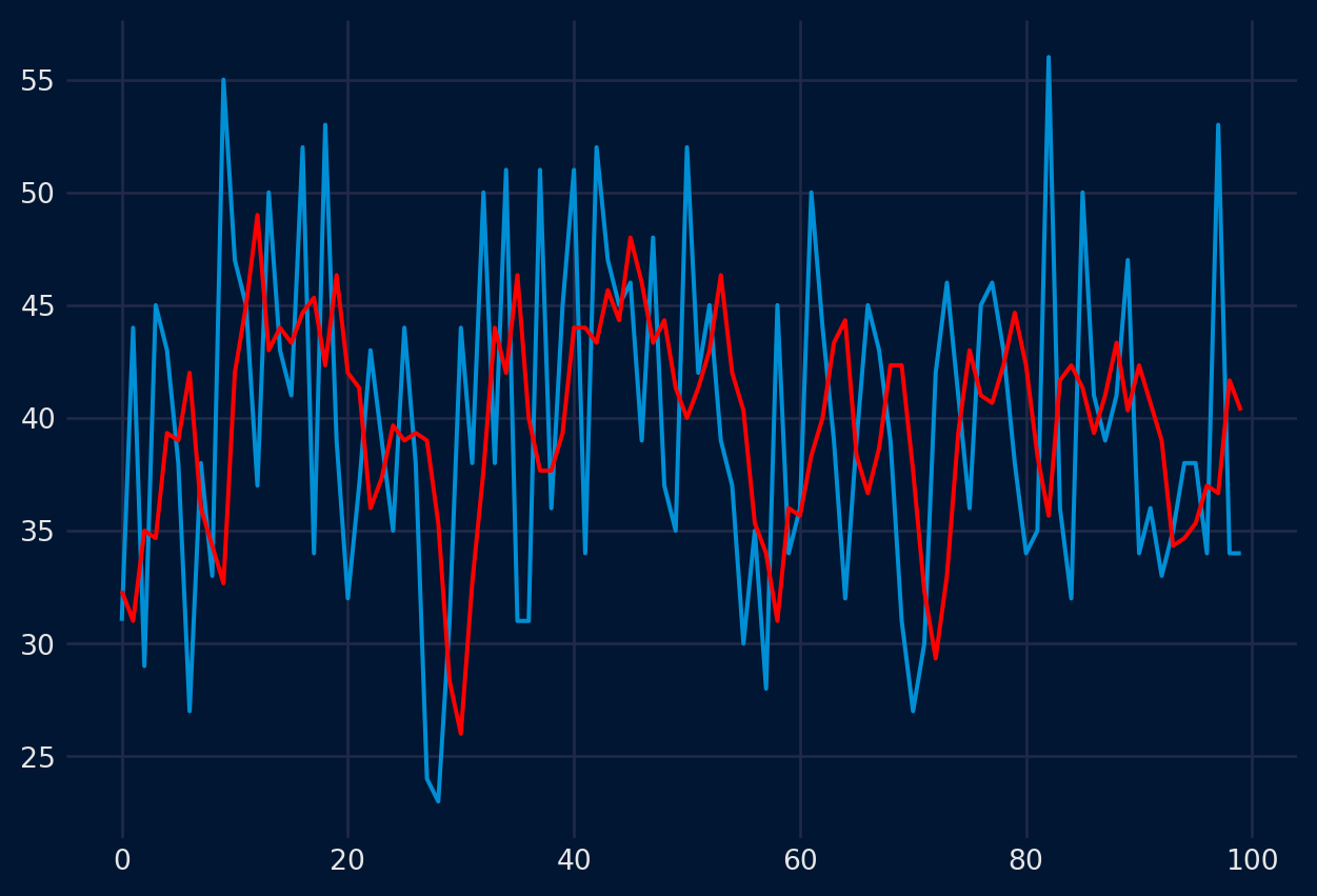 Podemos calcular la media de los valores actuales y anteriores y utilizarla para predecir el valor siguiente. Para los datos de temperatura, tendríamos que esperar 3 pasos de tiempo antes de tener 2 valores de los que sacar la media antes de poder utilizar ese valor para predecir un tercer valor.